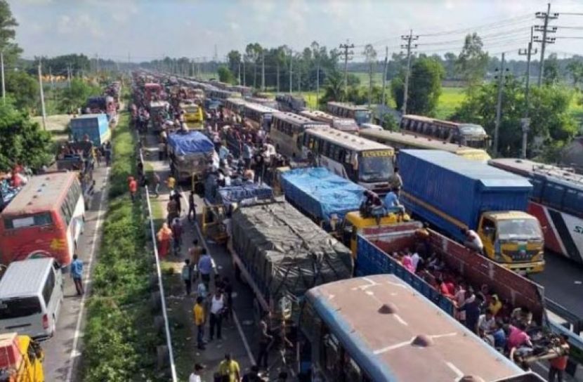 শনিবার (১৫ জুন) ভোর থেকে ঢাকা-টাঙ্গাইল-বঙ্গবন্ধু সেতু মহাসড়কের এলেঙ্গা থেকে সেতুপূর্ব টোলপ্লাজা পর্যন্ত প্রায় ১৩ কিলোমিটার সড়কে এমন পরিস্থিতির সৃষ্টি হয়েছে।