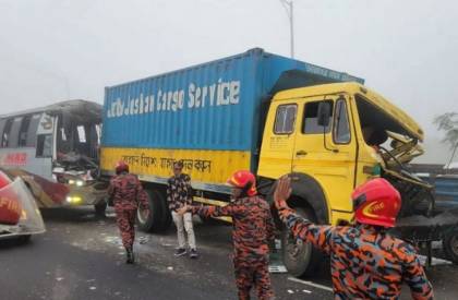 শুক্রবার (২৮ ফেব্রুয়ারি) সকাল সাড়ে ৬টার দিকে মহাসড়কের মাওয়া খানবাড়ি এলাকায় এই দুর্ঘটনা ঘটে।