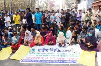 এসময় শিক্ষার্থীরা বলেন, অনার্স ২০১৫-১৬ শিক্ষাবর্ষে ৫টি পরীক্ষা হয়েছে, বাকি রয়েছে ৪টি পরীক্ষা। তবে করোনার সময়ে পরীক্ষা হয়নি। এ কারণে বিগত পাঁচটি পরীক্ষার মূল্যায়ন করে দ্রুত ফলাফল প্রকাশের দাবী করেন। তা না হলে সরকারি বিভিন্ন নিয়োগ পরীক্ষায় অংশ নিতে পারছে না তারা।