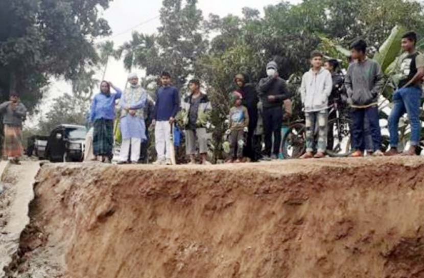 নিজস্ব প্রতিনিধি, গাজীপুর : কাপাসিয়া-শ্রীপুর সড়কসহ কমপক্ষে আড়াই হাজার বর্গফুট ভূমি বানার নদীতে ২০ ফুট দেবে গেছে। গাজীপুরের কাপাসিয়া উপজেলার দস্যু নারায়ণপুর এলাকায় গতকাল বৃহস্পতিবার দিবাগত রাত আনুমানিক ২টার দিকে এ ঘটনা ঘটে। ওই সড়কে যানবাহন চলাচল বন্ধ হয়ে গেছে।