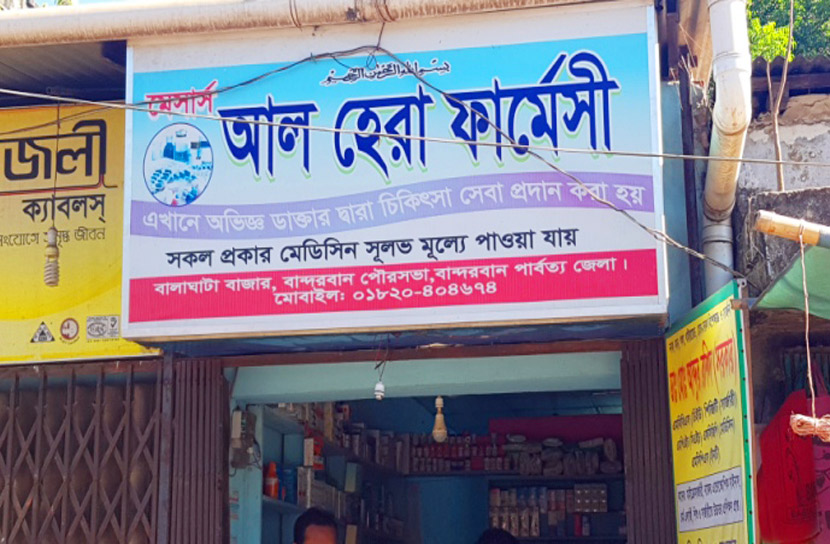 সরেজমিনে পরিদর্শনে জানা গেছে, বান্দরবান পৌরসভার ১ নম্বর ওয়ার্ডের বালাঘাটা বাজারের আল-হেরা নামে এই নতুন ঔর্ষধদের ফার্মেসিতে জেলার পার্শ্ববর্তী সাতকানিয়া ও চকরিয়া উপজেলা হতে বিতাড়িত ভুয়া ডাক্তার মো. আব্দুর রাশিদ (সরকার) আল-হেরা নামে ওই ওষুধের ফার্মেসিতে নাক, কান, গলা, হেড-নেক বিশেষজ্ঞ ও সার্জন পরিচয়ে সাইনবোর্ড টাঙিয়ে জনগণের সাথে প্রতারণার করে আসছে। এই ফার্মেসিতে বৈজ্ঞানিক পদ্ধতিতে নাকের পলিপ, সুন্নতে খতনা, টিউমার, জন্মগত ঠোঁট কাটা, টনসিল অপারেশন করে রোগীদের কাছ থেকে মোটা অংকের টাকা হাতিয়ে নেওয়ারও গুরুতর অভিযোগ উঠেছে।