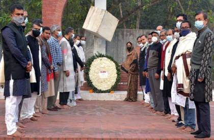 লালশাক আর পালংশাকের চারাগুলো যত বড় হচ্ছে, ততই স্পষ্ট ও নান্দনিক হয়ে উঠছে শহীদ মিনার। ভাষাশহীদের শ্রদ্ধা জানাতেই ফসলের খেতে এমন শিল্পকর্ম এঁকেছেন বলে জানান কৃষক রুমান আলী শাহ। যে জমিতে পরম ভালোবাসায় ফসল ফলান, সেই জমির ফসলের মধ্যে এবার হৃদয়খচিত শ্রদ্ধার বহিঃপ্রকাশ ঘটিয়েছেন তিনি।