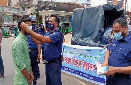 নিজস্ব প্রতিনিধি, চাঁপাইনবাবগঞ্জ : দেশে আবারো করোনা ভাইরাসের দ্বিতীয় ঢেউ শুরু হয়েছে এবং দিন দিন সংক্রমণ বাড়ছে। এ অবস্থায় মাস্ক পরাসহ করোনা স্বাস্থ্যবিধি পালনে জনগণকে উদ্বুদ্ধ করতে দ্বিতীয় দফা মাঠে নেমেছে পুলিশ।