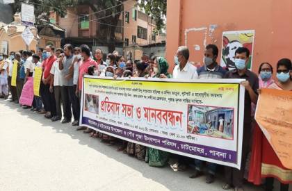 বিশ্ববিদ্যালয় পূজা উদযাপন পরিষদের সভাপতি ব্যবস্থাপনা বিভাগের সহযোগী অধ্যাপক ড. ধনঞ্জয় কুমারের সভাপতিত্বে মানববন্ধনে বিশ্ববিদ্যালয় প্রভোস্ট কাউন্সিলের সভাপতি অধ্যাপক ড. তপন কুমার জোদ্দার, প্রক্টর অধ্যাপক ড. জাহাঙ্গীর হোসেন, পরিবহন প্রশাসক অধ্যাপক ড. আনোয়ার হোসেন, আইসিটি বিভাগের অধ্যাপক ড. পরেশ চন্দ্র বর্ম্মণ, বাংলা বিভাগের অধ্যাপক ড. গৌতম কুমার দাস এবং ফলিত পুষ্টি ও খাদ্য প্রযুক্তি বিভাগের সহযোগী অধ্যাপক শফিকুল ইসলাম উপস্থিত ছিলেন। এছাড়াও মানববন্ধনে বিশ্ববিদ্যালয় শাখা ছাত্রলীগ ও শাখা ছাত্র মেত্রীর নেতাকর্মীসহ বিভিন্ন বিভাগের শিক্ষক-শিক্ষার্থী ও কর্মকর্তা-কর্মচারীরা উপস্থিত ছিলেন।