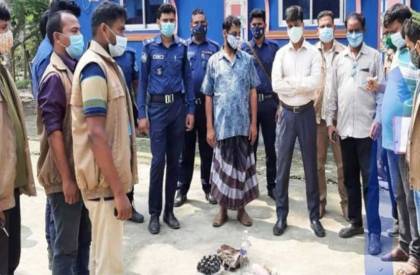 ফায়ার সার্ভিসের কর্মীরা তাকে উদ্ধারের চেষ্টা করছে।