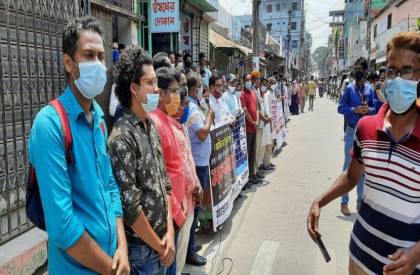 বুধবার (১৯ মে) শহরের চৌরাস্তায় ঘণ্টাব্যাপী এ মানববন্ধন কর্মসূচি পালন করা হয়।