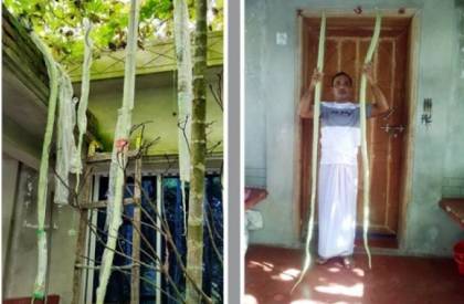 নিজস্ব প্রতিনিধি, খুলনা: খুলনার পাইকগাছায় দেখা মিলেছে সাত হাত লম্বা চিচিঙ্গা। এলাকায় এটি কুশি নামে পরিচিত। মাত্র দেড় মাসেই ফলন আসা এই চিচিঙ্গা ৭ হাতেরও অধিক লম্বা হয়।