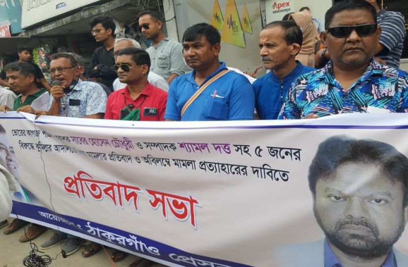 বক্তারা ভোরের কাগজের সম্পাদক প্রকাশক সহ মাছরাঙা টেলিভিশনের জেলা প্রতিনিধি বদরুল ইসলাম বিপ্লব এবং ডিবিসি টিভির জেলা প্রতিনিধি নবিন হাসানের বিরুদ্ধে দায়েরকৃত মিথ্যা মামলা অবিলম্বে প্রত্যাহারের দাবি জানান।অন্যথায় বৃহত্তর আন্দোলনের ঘোষনা দেওয়া হয়।