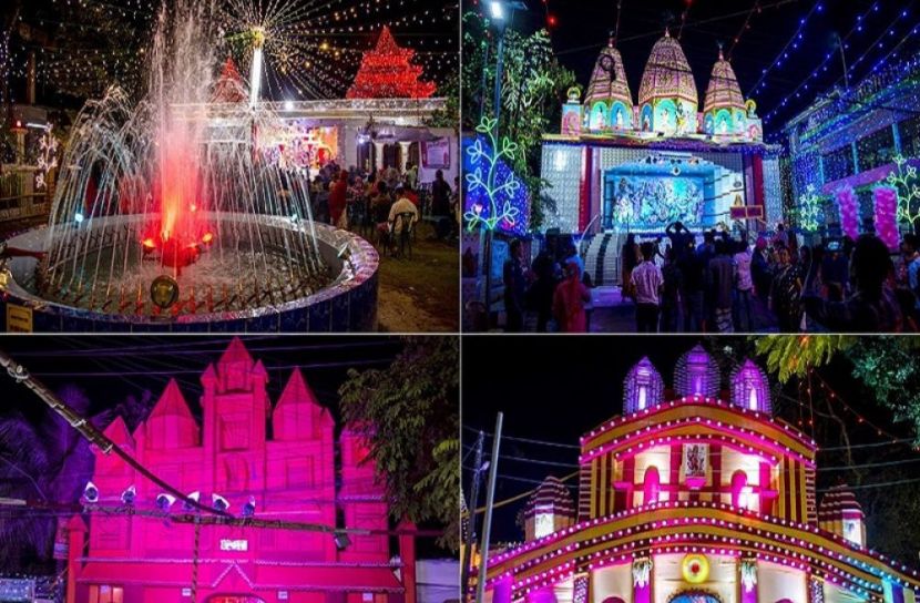 পূজামণ্ডপের জন্য শহরের ডেভিড কোম্পানি পাড়া, পূর্বপাড়া, ব্রিজরোড, মধ্যপাড়া, ভি-এইড রোড কালিবাড়ি, কলেজপাড়াসহ বিভিন্ন পাড়া মহল্লার অলিগলি বাহারি রংয়ের বাতিতে আলোকিত করা হয়েছে। সন্ধ্যার পরে ভক্তদের পাশাপাশি দর্শনার্থীদের ভিড় বাড়ে পূজা মণ্ডপগুলোতে। আর মণ্ডপগুলোতে ধর্মীয় রীতি নীতি মেনে পূজা-অর্চনায় মগ্ন থাকছেন পূজারীরা।