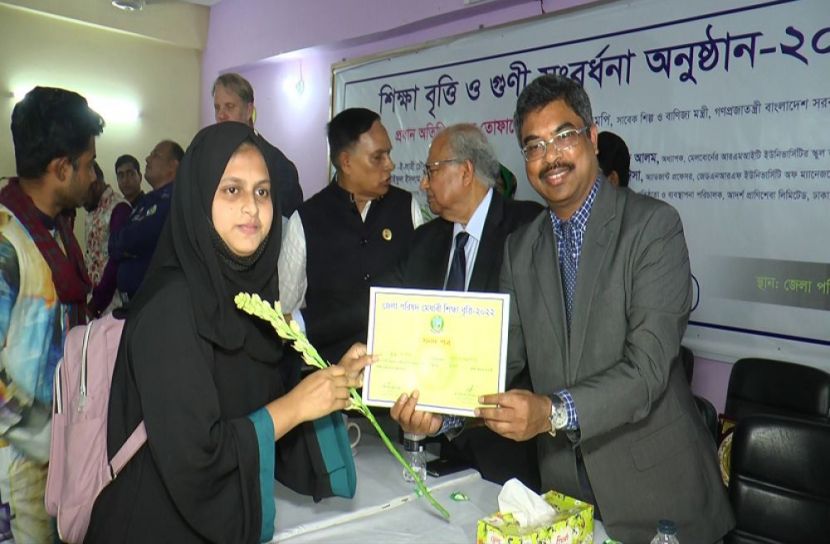 আদিল হোসেন তপু, ভোলা: ভোলায় মেধাবী শিক্ষার্থীদের শিক্ষা বৃত্তি ও গুণী সংবর্ধনা দিয়েছে ভোলা জেলা পরিষদ।