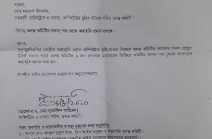 পরদিন ১৪ আগস্ট মন্ত্রণালয় তিন সদস্যের তদন্ত কমিটি গঠন করে। কমিটিকে পাঁচ কর্মদিবসের মধ্যে তদন্ত শেষে প্রতিবেদন জমা দিতে বলা হয়।