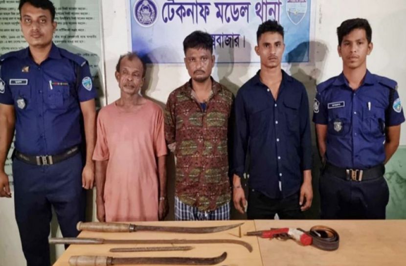 গ্রেফতারকৃতরা হলেন-টেকনাফ পৌরসভার ৭ নম্বর ওয়ার্ডের উত্তর জালিয়া পাড়ার মৃত মো. আলীর ছেলে আকতার হোসেন (৪০), ৯ নম্বর ওয়ার্ড খানকার ডেইলের মৃত হাজী আমীর হামজার ছেলে মো. ইউনুছ (৫৮) ও চকরিয়া পৌরসভার ৩ নম্বর ওয়ার্ড তরচঘাট পশ্চিম বাটাখালীর নবাব মিয়ার ছেলে মো. সোহেল (২৩)। গ্রেফতারের সময় তাদের কাছ থেকে একটি দেশীয় বন্দুক, এক রাউন্ড গুলি ও লম্বা ছোরা, লম্বা রাম দা, কিরিচ ও লোহার রড জব্দ করা হয়েছে।