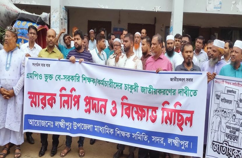 সোলাইমান ইসলাম নিশান : লক্ষ্মীপুরে জাতীয়করণের (সরকারিকরণ) দাবিতে পূর্বের দিনের মত বিদ্যালয়ে তালা ঝুলিয়ে আন্দোলন ও বিক্ষোভ মিছিল করেছেন শিক্ষক ও কর্মচারীরা।