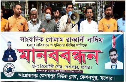 জামালপুর প্রতিনিধি : জামালপুরের মাদারগঞ্জে সাবেক ইউপি সদস্য ও জোড়খালী ইউনিয়ন শ্রমিকলীগের সহ সভাপতি জহুরুল হক হত্যা মামলায় গ্রেফতারকৃত আসামিদের ফাঁসির দাবিতে মাবনবন্ধন অনুষ্ঠিত হয়েছে।