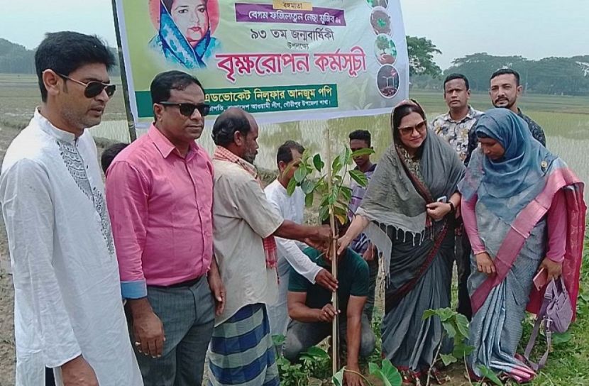 হলি সিয়াম শ্রাবণ, গৌরীপুর (ময়মনসিংহ) প্রতিনিধি : জাতির পিতা বঙ্গবন্ধু শেখ মুজিবুর রহমানের সহধর্মিণী বঙ্গমাতা বেগম ফজিলাতুন নেছা মুজিবের ৯৩তম জন্মবার্ষিকী উপলক্ষে ৯৩টি বৃক্ষরোপণ করেন ময়মনসিংহের গৌরীপুর উপজেলা আওয়ামী লীগের সভাপতি এডভোকেট নিলুফার আনজুম পপি।