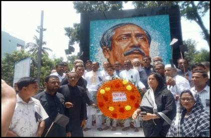 পরে জাতির পিতা বঙ্গবন্ধুসহ ৭৫ এর ১৫ আগস্টের কালরাতে শাহাদাত বরণকারীদের প্রতিকৃতিতে পুষ্প মাল্য অর্পণ করেন আওয়ামী লীগ নেতৃবৃন্দ।