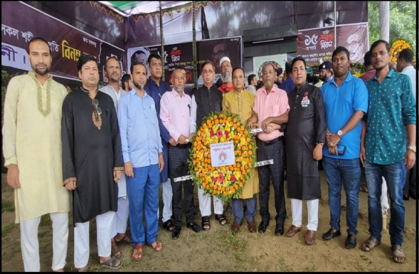 ফেনী প্রতিনিধি: জাতীয় শোক দিবস ও জাতির জনক বঙ্গবন্ধু শেখ মুজিবুর রহমান'র ৪৮তম শাহাদাৎ বার্ষিকী উপলক্ষে ফেনী স্মৃতিস্তম্ভ প্রাঙ্গণে বঙ্গবন্ধুর প্রতিকৃতিতে শ্রদ্ধা নিবেদন করেছে ফেনী সাংবাদিক ইউনিয়ন।