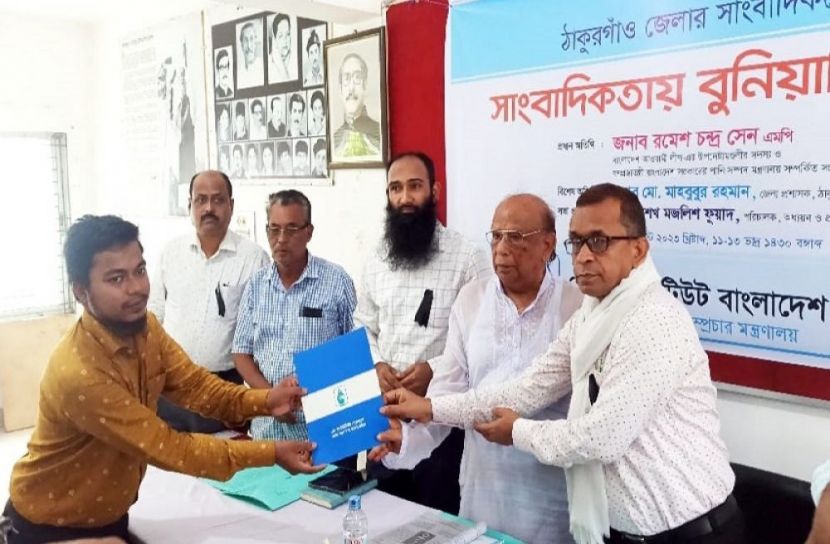 এ সময় প্রধান অতিথি হিসেবে সাংবাদিকদের হাতে সনদ তুলে দেন বাংলাদেশ আওয়ামী লীগের উপদেষ্টামণ্ডলীর সদস্য ও ঠাকুরগাঁও-১ আসনের সংসদ সদস্য রমেশ চন্দ্র সেন এমপি ও সভার প্রধান পিআইবি’র অধ্যয়ন ও প্রশিক্ষণ বিভাগের পরিচালক শেখ মজলিশ ফুয়াদ।