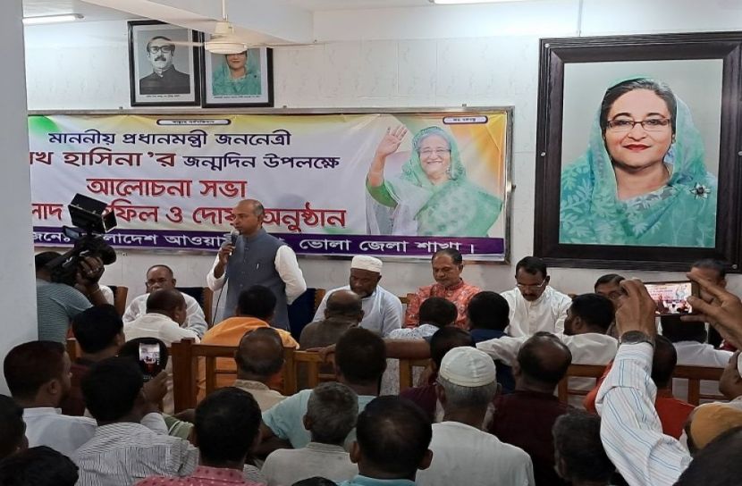 ভোলা প্রতিনিধি : নানা আয়োজনের মধ্যে দিয়ে ভোলায় প্রধানমন্ত্রী ও আওয়ামী লীগ সভাপতি শেখ হাসিনার ৭৭ তম জন্মদিন পালিত হয়েছে। অনুষ্ঠানের মধ্যে ছিল আলোচনা সভা, দোয়া মিলাদ মাহফিল ও দুস্থদের মাঝে খাবার বিতরণ।