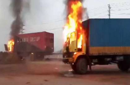 তিনি আরও বলেন, এ সময় চালক ট্রাকটি উল্টো ঘুরিয়ে পালানোর সময় পাশের একটি গর্তে পড়ে যায়। এ সময় তিনি সহকারীকে নিয়ে পালিয়ে গেলে দুর্বৃত্তরা পেট্রোল ঢেলে ট্রাকে আগুন ধরিয়ে দেয়।