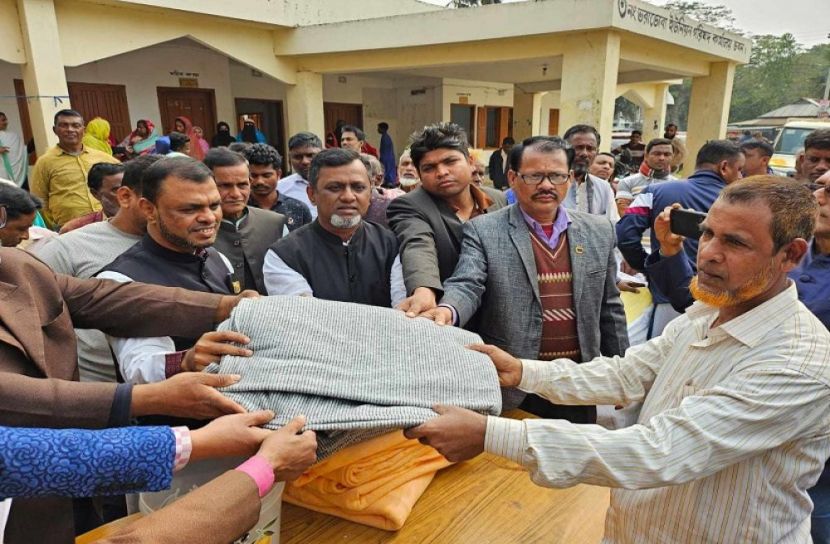 বুধবার সকালে উপজেলার ভরাডোবা ইউনিয়ন পরিষদ কার্যালয়ের সামনে কম্বল বিতরণ করা হয়।
