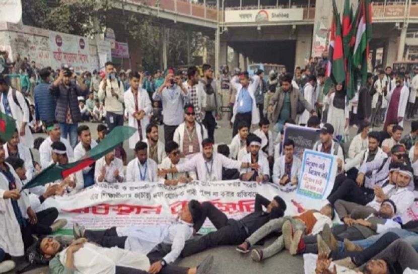 নিজস্ব প্রতিবেদক : রাজধানীর শাহবাগে চার দফা দাবিতে বিক্ষোভ করছেন মেডিকেল অ্যাসিটেন্ট ট্রেইনিং স্কুল-ম্যাটসের শিক্ষার্থীরা।