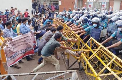 তিনি আরও বলেন, এ বছর ২ জুন থেকে আমরা দৈনিক মজুরিভিত্তিক ১৩২ জন আন্দোলন করে আসছি। ১২ জুন আমরা রেজিস্ট্রার স্যারের পায়ে ধরেছি। অথচ তিনি একটুও সদয় হননি। সেই কারণে উপাচার্য ও রেজিস্ট্রারের দফতর তালাবন্ধ করে রেখেছি। আমাদের দাবি মানা না হলে স্যারদের অবরুদ্ধ থাকতে হবে।