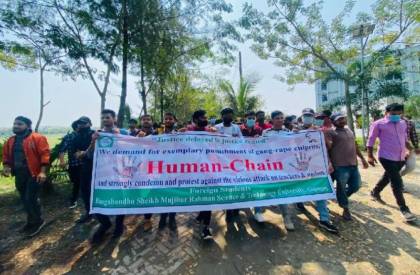 মেহেদেী হাসান সাকিব, বশেমুরবিপ্রবি: গোপালগঞ্জের বঙ্গবন্ধু শেখ মুজিবুর রহমান বিজ্ঞান ও প্রযুক্তি বিশ্ববিদ্যালয়ের (বশেমুরবিপ্রবি) এক ছাত্রীকে গণধর্ষণের প্রতিবাদে এবং শিক্ষক-শিক্ষার্থীদের ওপর হামলাকারীদের চিহ্নিত করে দৃষ্টান্তমূলক শাস্তির দাবিতে গণস্বাক্ষর কর্মসূচি পালন করেছে আন্দোলনরত শিক্ষার্থীরা।