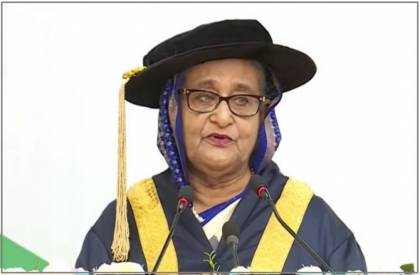 সমাবর্তন অনুষ্ঠানে প্রধান অতিথির বক্তব্য রাখেন প্রধানমন্ত্রী শেখ হাসিনা।