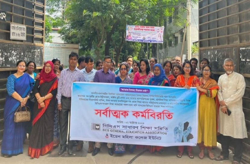 সোমবার (২ অক্টোবর) দুপুর পৌনে ১২টায় ঢাকা বিশ্ববিদ্যালয় অধিভুক্ত ইডেন মহিলা কলেজ গেটে বিসিএস সাধারণ শিক্ষা সমিতি, ইডেন মহিলা কলেজ ইউনিটের আয়োজনে প্রায় ২৬০ জন শিক্ষকের উপস্থিতিতে এই কর্মবিরতির ঘোষণা দেওয়া হয়।