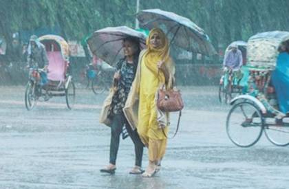 আজ ঢাকা, ময়মনসিংহ, খুলনা, বরিশাল, চট্টগ্রাম ও সিলেট বিভাগের ২/১ জায়গায় অস্থায়ীভাবে দমকা হাওয়াসহ বৃষ্টি অথবা বজ্রসহ বৃষ্টি হতে পারে। এ সময় দেশের অন্যত্র অস্থায়ীভাবে আংশিক মেঘলা আকাশসহ আবহাওয়া প্রধানত শুষ্ক থাকতে পারে।