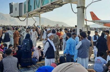 রোববার দিনব্যাপী উত্তেজনার মধ্য দিয়ে আফগানিস্তানের ক্ষমতা দখলে নেয় তালেবান। এরপর থেকেই ভয় আর আতঙ্কে দেশের মাটি ছাড়ছেন আফগানরা। কাল সকাল থেকে কাবুল বিমানবন্দরে কয়েক লাখ মানুষ ভিড় করছেন। অনেকে বিমানে চড়তে পারলেও এখনও বহু মানুষ অপেক্ষা করছেন সেখানে।