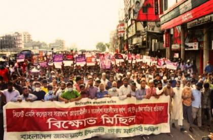 মিছিল থেকে ধর্ষণ, নারী নির্যাতনের প্রতিবাদে নেতাকর্মীরা নানা স্লোগান দেন। মিছিলে আরও উপস্থিত ছিলেন কেন্দ্রীয় মজলিশে শুরা সদস্য ও ঢাকা মহানগরী দক্ষিণের সহকারী সেক্রেটারি ড. হেলাল উদ্দিন, ইসলামী ছাত্রশিবিরের সাবেক কেন্দ্রীয় সভাপতি ও জামায়াতের ঢাকা মহানগরী দক্ষিণের সহকারী সেক্রেটারি দেলোয়ার হোসাইন ও আব্দুল জব্বার, কেন্দ্রীয় মজলিশে শুরা সদস্য ও ঢাকা মহানগরী দক্ষিণের কর্মপরিষদ সদস্য আব্দুস সবুর ফকির, ঢাকা মহানগরী দক্ষিণের কর্মপরিষদ সদস্য শামছুর রহমান, কামাল হোসাইন, ঢাকা মহানগরী দক্ষিণের কর্মপরিষদ সদস্য ও শ্রমিক নেতা হাফিজুর রহমান, ইসলামী ছাত্রশিবিরের সাবেক কেন্দ্রীয় সভাপতি মোবারক হোসাইন, ঢাকা মহানগরী পুর্বের সভাপতি মুজিবুর রহমান, ঢাকা মহানগরী দক্ষিণের রাসেল মাহমুদ, ঢাকা কলেজের সভাপতি আমিনুল ইসলাম প্রমুখসহ জামায়াতের ঢাকা মহানগরী দক্ষিণের বিভিন্ন থানার আমির ও সেক্রেটারিরা।