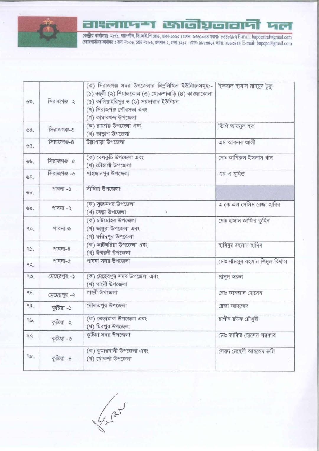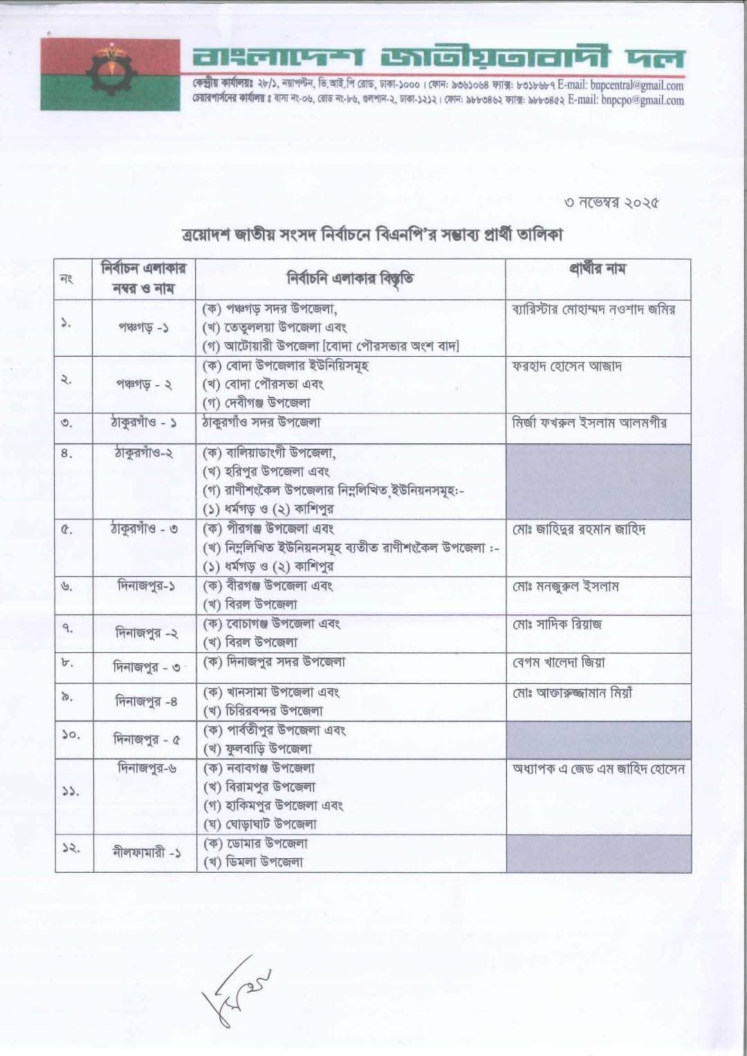 বিএনপির পক্ষ থেকে ত্রয়োদশ জাতীয় সংসদ নির্বাচনে ২৩৭টি আসনে সম্ভাব্য প্রার্থীর নাম ঘোষণা করা হয়েছে।