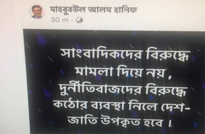 তিনি আরও বলেন, বর্তমান সরকার কোন রাজনৈতিক সরকার নয়। এটা পুরোপুরি ভাবে একটি আমলাতান্ত্রিক সরকার। আমলারাই নীতি নির্ধারণ করে, দেশ পরিচালনা করে। এ কারণেই দেশে এই চরম অবস্থার সৃষ্টি হয়েছে। বর্তমান সরকার ফ্যাসিস্ট সরকার। এদের নির্ভর করতে হয় আমলা ও আইনশৃঙ্খলা বাহিনীর ওপর। সরকারের রাজনৈতিক দৃষ্টিভঙ্গি থাকলে সাংবাদিকদের সঙ্গে এরকম অবস্থা সৃষ্টি হতোনা।