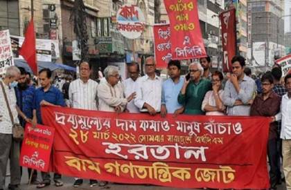 সান নিউজ ডেস্ক: জ্বালানি তেল ও সারের বর্ধিত মূল্য প্রত্যাহারের দাবিতে আগামী ২৫ আগস্ট (বৃহস্পতিবার) সারাদেশে অর্ধদিবস হরতালের কর্মসূচি ডাক দিয়েছেন বাম গণতান্ত্রিক জোট।