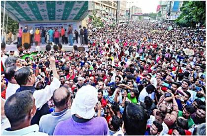 এসময় তারা খালেদা জিয়ার মুক্তি, সরকারের পদত্যাগ এবং সরকারবিরোধী বিভিন্ন স্লোগানে রাজপথ মুখরিত করে তোলেন।