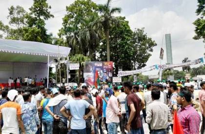তবে দুপুর ২টার দিকে আনুষ্ঠানিকভাবে সমাবেশ শুরুর আগে মঞ্চ ভেঙে পড়ে। যে কারণে একটি পিকআপ ভ্যানে সমাবেশ পরিচালনা করা হয়।