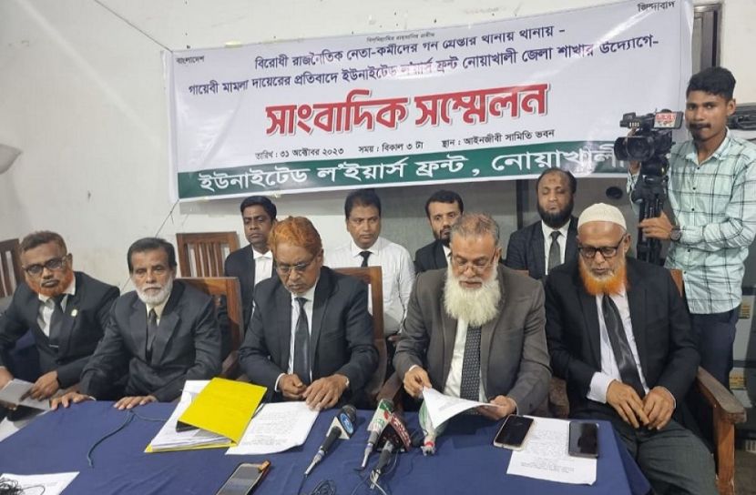 নোয়াখালী প্রতিনিধি: নোয়াখালীতে বিএনপি-জামায়াতের নেতাকর্মীদের গায়েবি মামলায় গণগ্রেফতারের অভিযোগ করেছে নোয়াখালী ইউনাইটেড লইয়ার্স ফ্রন্ট নেতৃবৃন্দ।