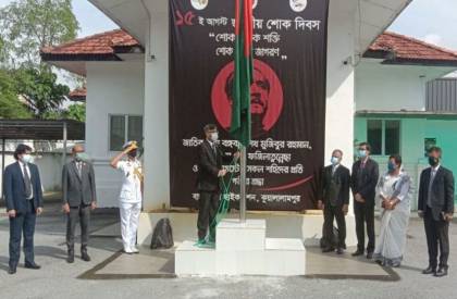 প্রত্যুষে দূতাবাস ও বাংলাদেশ ভবনে জাতীয় পতাকা অর্ধনমিত করণের মাধ্যমে জাতীয় শোক দিবসের কার্যক্রম শুরু হয়। জাতির পিতা বঙ্গবন্ধু শেখ মুজিবুর রহমানের প্রতিকৃতিতে পুষ্পস্তবক অর্পণের মাধ্যমে ১৫ই আগস্টের শহীদদের স্মৃতির প্রতি গভীর শ্রদ্ধাঞ্জলি জ্ঞাপন করেন রাষ্ট্রদূতসহ দূতাবাসের সকল কর্মকর্তা। এরপর, একে একে বীর মুক্তিযোদ্ধাগণ, বাংলাদেশ মহিলা সমিতি, জনতা ব্যাংক, বাংলাদেশ বিমান, বাংলাদেশ স্কুল, বঙ্গবন্ধু পরিষদ ও বাংলাদেশ এসোসিয়েশনের পক্ষ হতে ফুল দিয়ে শ্রদ্ধা জানানো হয়, পাশাপাশি প্রবাসীগণও তাদের ব্যক্তিগত শ্রদ্ধা নিবেদন করেন।