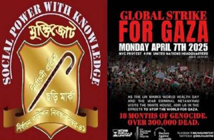 আজ সোমবার (৭ এপ্রিল) নিউইয়র্কে অবস্থিত জাতিসংঘের প্রধান কার্যালয়ের সামনে স্থানীয় কর্মীরা জড়ো হয়ে বিক্ষোভ প্রদর্শন করবেন। কর্মসূচির নাম ‘গ্লোবাল স্ট্রাইক ফর গাজা’।