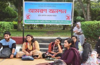 নববর্ষ শোভাযাত্রা উদযাপনের জন্য ঢাকা বিশ্ববিদ্যালয়ের চারুকলা অনুষদে বানানো দুটি মোটিফ আগুনে পুড়ে গেছে। এর মধ্যে একটি ফ্যাসিবাদের মুখাকৃতি ও আরেকটি শান্তির পায়রা।