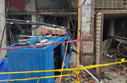 শহরের অলিতে গলিতে বৃষ্টির পানিতে জলাবদ্ধতা। পশ্চিম রাজাবাজার, ফার্মগেট ছবি: আসমাউল মুত্তাকিন।