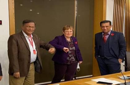 এ সময় অন্যান্যের মধ্যে প্রধানমন্ত্রীর প্রেস সচিব ইহসানুল করিম, পররাষ্ট্র সচিব মাসুদ বিন মোমেন এবং প্রধানমন্ত্রীর উপ-প্রেস সচিব কে এম শাখাওয়াত মুন উপস্থিত ছিলেন।