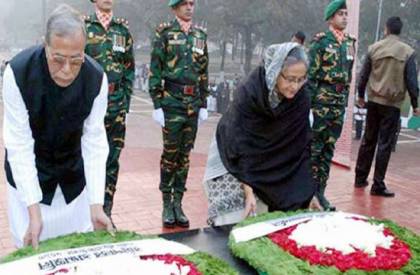 মহান বিজয় দিবস উপলক্ষে ভোর সাড়ে ৬টায় রাষ্ট্রপতি মো. আবদুল হামিদ ও প্রধানমন্ত্রী শেখ হাসিনা সাভারে জাতীয় স্মৃতিসৌধে মুক্তিযুদ্ধের বীর শহীদদের প্রতি পুষ্পস্তবক অর্পণ করেন।