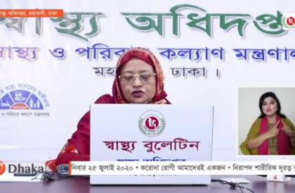 রোববার (২৬ জুলাই) করোনা সংক্রান্ত নিয়মিত অনলাইন স্বাস্থ্য বুলেটিনে এ তথ্য জানান স্বাস্থ্য অধিদপ্তরের অতিরিক্ত মহাপরিচালক (মহাপরিচালকের দায়িত্বপ্রাপ্ত) অধ্যাপক ডা. নাসিমা সুলতানা।