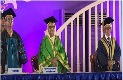 রোববার (২৯ অক্টোবর) বেলা ১১ টা ৫৮ মিনিটে বিশ্ববিদ্যালয়ের কেন্দ্রীয় খেলার মাঠে আয়োজিত বিশেষ সমাবর্তনে সভাপতি বিশ্ববিদ্যালয়ের উপাচার্য অধ্যাপক ড. মো. আখতারুজ্জামান প্রধানমন্ত্রীর হাতে এ সম্মাননা ক্রেস্ট প্রদান করেন।