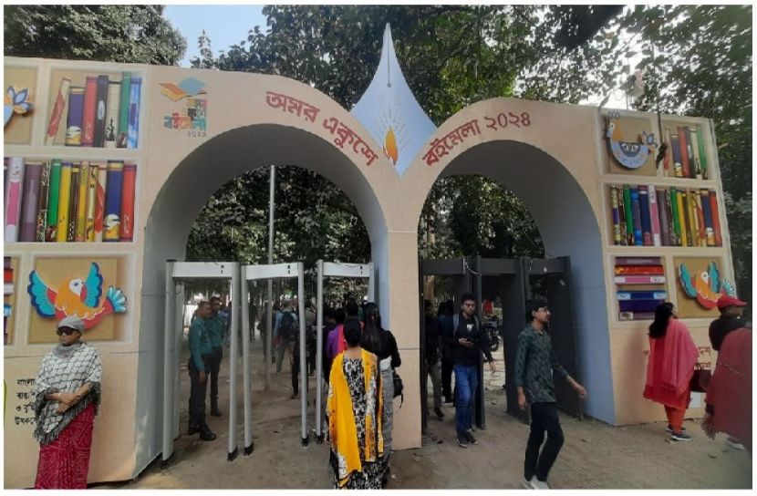 সরেজমিনে আরও দেখা গেছে, ছুটির দিনে সোহরাওয়ার্দী উদ্যানের বইমেলায় টিএসসি সংলগ্ন গেট দিয়েই প্রবেশ করছেন অধিকাংশ মানুষ। সেখানে লাইনে দাঁড়িয়ে নারী-পুরুষ আলাদাভাবে ভেতরে প্রবেশ করতে হচ্ছে। তবে শুরুতেই পড়তে হচ্ছে পুলিশের নিরাপত্তা তল্লাশিতে। মেলায় আসা পাঠক-দর্শনার্থীদের সুবিধার্থে বরাবরের মতোই মূল ফটকের সামনে অনুসন্ধান- ঘোষণা বুথ এবং মেলার ম্যাপ রাখা হয়েছে। এরপর ভেতরের দিকে বিস্তৃত হয়েছে প্যাভিলিয়ন, স্টল এবং লিটলম্যাগ।