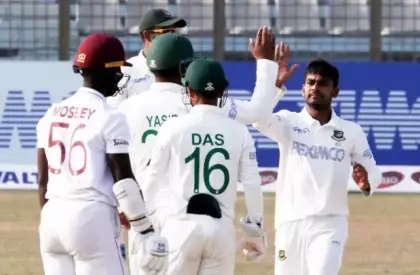 দুই ক্যারিবিয়র আক্রমণে অসহায় দেখাচ্ছে মিরাজ-তাইজুলদের। মায়ার্স হাফ সেঞ্চুরির আগে জীবন পেয়েছিলেন শান্ত ক্যাচ মিস থেকে। সেই ভুলের খেসারত দেয় বাংলাদেশ।