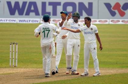 দিনের প্রথম বলটিই পায়ে করেন রাহী। রানের সহজ সুযোগ হাতছাড়া করেননি হাফসেঞ্চুরি করে অপরাজিত থাকা বোনার, অনসাইডে ঠেলেই নিয়ে নেন তিনটি রান, স্ট্রাইক পান জশুয়া। এক বল পর রাহীর ভেতরে ঢোকা বল আঘাত হানে জশুয়ার প্যাডে। আম্পায়ার সৈকত আউট দেননি। বাংলাদেশ রিভিউ নিয়েও সফল হয়নি। ঠিক পরের বলেই পয়েন্টে দুর্দান্ত বাউন্ডারি হাঁকান জশুয়া।